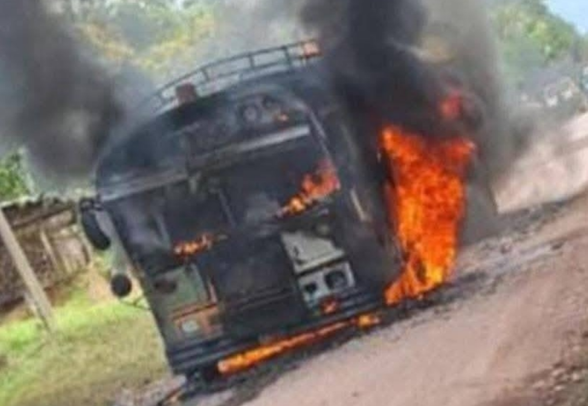 Convertido en chatarra quedó un bus que prestaba servicios entre El Naranjo y Waslala, Caribe Norte, al incendiarse en la comarca Las Torres, la mañana de este viernes.