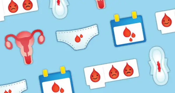 Los emojis incluyen una toalla sanitaria, un útero, unas pantaletas, un calendario y unas gotas de sangre.