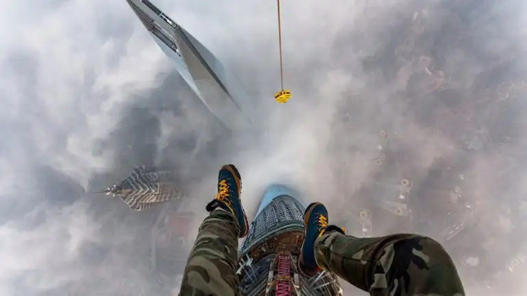 Eligieron la noche del Año Nuevo chino, en que prácticamente se paraliza todo el país, para ingresar al edificio en obra que será, a partir de 2015, el segundo rascacielos más alto del mundo, con 127 pisos y 632 metros de altura. La falta de vigilancia y la ausencia de operarios hicieron posible que estos amigos cumplieran con éxito su arriesgada travesura.