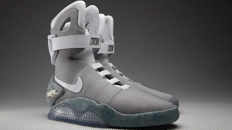 Al poco tiempo de llegar, el científico le da ropa de la época para que no desentone con su atuendo de los años 80. Entonces Marty, sentado en el DeLorean con las piernas hacia afuera, se pone unas zapatillas Nike, toca un botón y éstas, automáticamente, le ajustan los cordones a la medida de su pie.