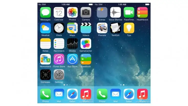 Las capturas, publicadas por 9to5Mac, no muestran grandes diferencias con iOS 7 (la versión actual de la plataforma) a primera vista. Pero al analizar los íconos en una de las fotos, se ve que se incluyen aplicaciones que actualmente no están en el sistema operativo: Healthbook, Preview, TextEdit y Tips.