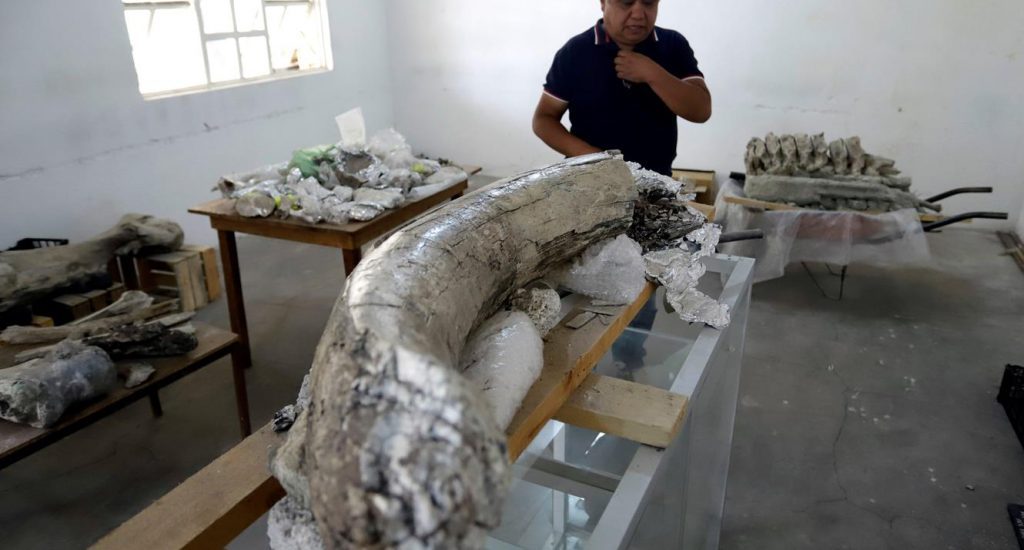 Durante la realización de obras en un terreno privado en el central estado mexicano de Puebla, fueron hallados restos fósiles de un perro lobo gigante, de un mamut, y de camello con antigüedad de entre 10 mil y 14 mil años.