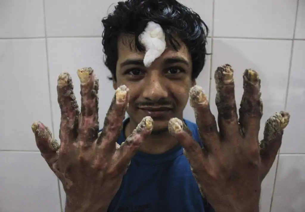Todavía no las puede cerrar completamente y en las palmas hay aún una capa de verrugas, pero el conocido como “hombre árbol” de Bangladesh está feliz con sus nuevas manos, libres tras muchas operaciones, mientras encara un proceso de retoques estéticos y piensa en un futuro como persona normal.