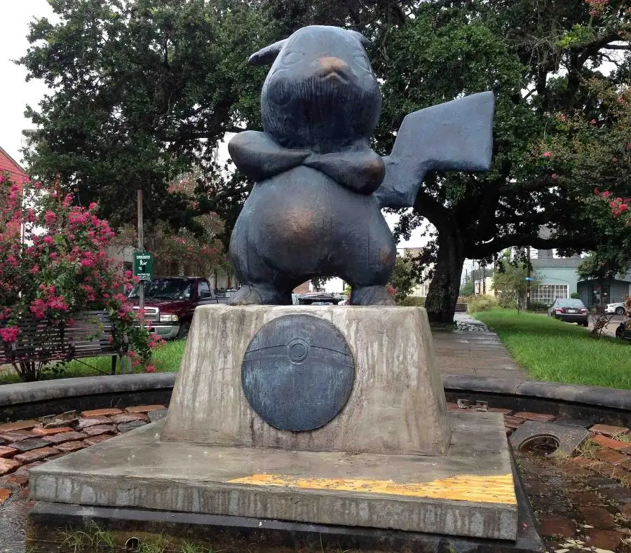 Alguien colocó una estatua del emblemático Pokémon, Pikachu, en el centro de una fuente averiada en un parque el fin de semana. Fotografías muestran al Pikachu con los brazos cruzados parado sobre una base de cemento con una Pokébola al lado. La inscripción #POKEMONUMENTO puede leerse en el cemento.