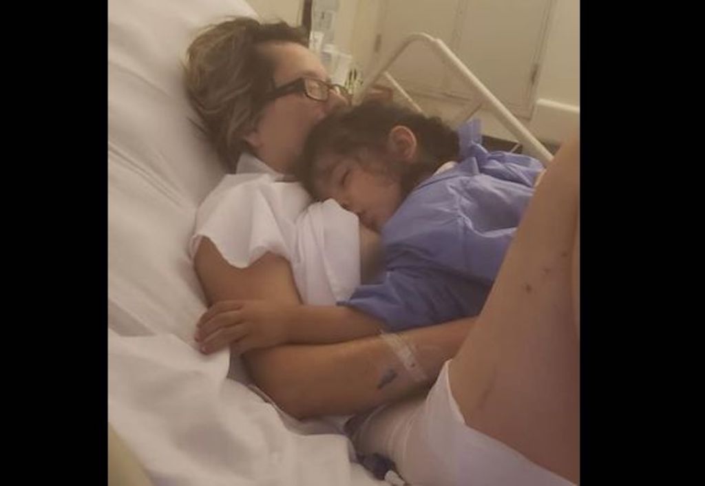 La mujer que tenía un mes de estar en coma se despertó, se levantó la bata y amamantó a su hija más pequeña.