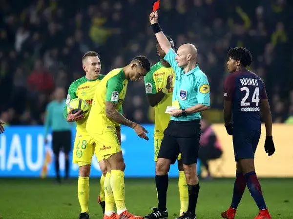 Este domingo el árbitro francés Tony Chapron propinó una patada a un jugador del Nantes en el partido contra el París Saint-Germain (PSG), al que luego también expulsó.