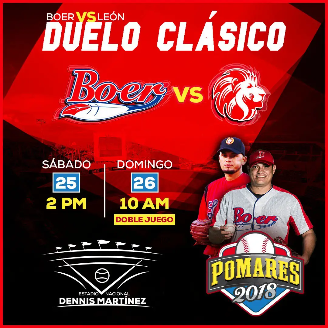Este fin de semana tendremos la mejor serie del torneo Germán Pomares en el béisbol nicaragüense. Los indios del Bóer reciben en el estadio nacional a León, espere transmisión deportiva de Tu Nueva Radio YA.