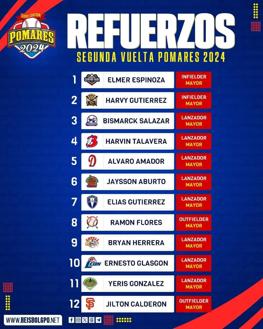 Les dejamos la escogencia de cada uno de los equipos del torneo German Pomares-2024 para la segunda ronda del campeonato:
