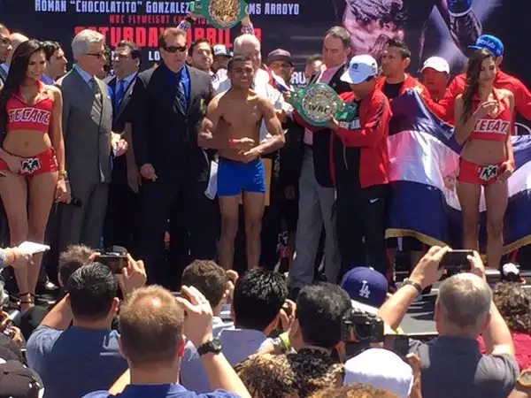 El tricampeón del mundo, Román “Chocolatito” González superó la primera prueba de cara a la pelea de este sábado 23 de abril, en la cual se enfrentará a McWilliams Arroyo, al marcar 111.4 libras durante la ceremonia de pesaje.
