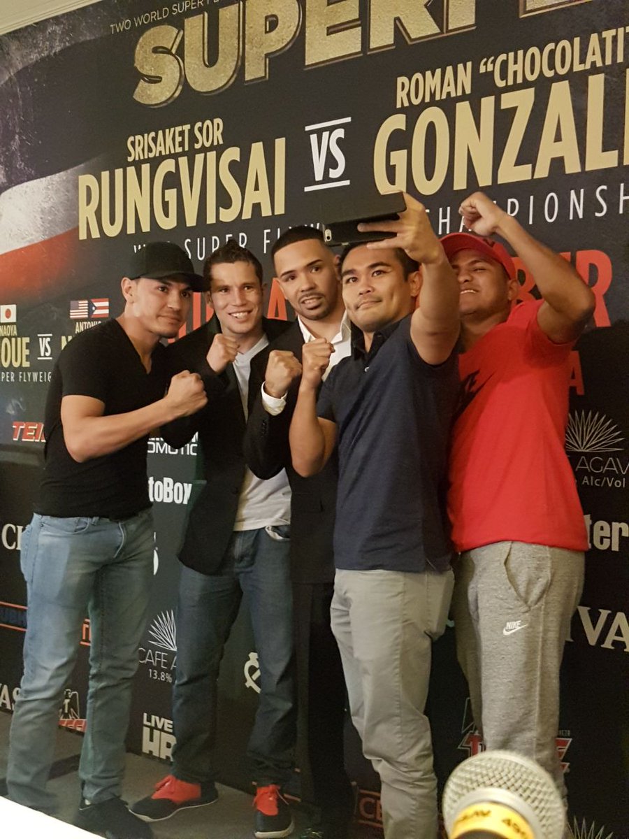 Román “El Chocolatito” González se encontró con tres viejos conocidos y todos vencidos, el pasado sábado durante la Conferencia de Prensa que organizó la empresa K2-Promotion de Tom Loeffler.