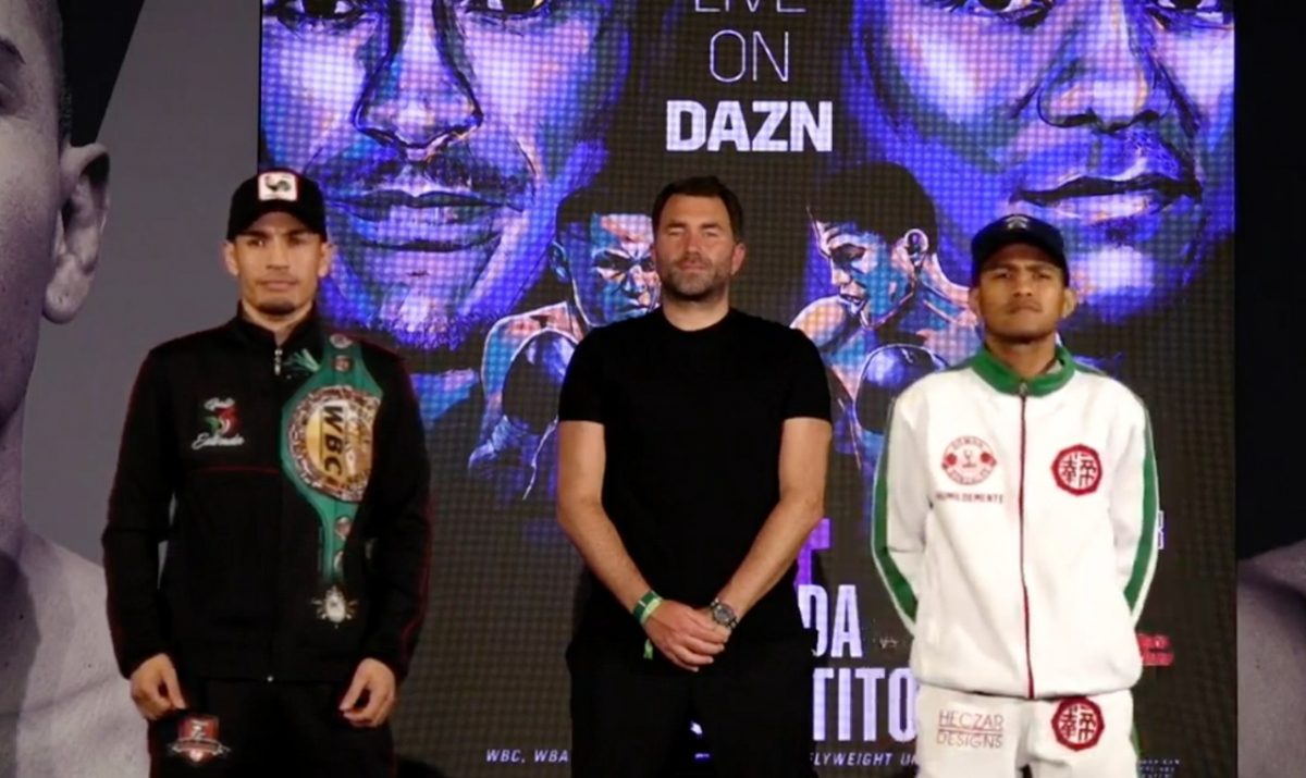 Chocolatito y Estrada estuvieron frente a frente en la Conferencia de Prensa que realizó la empresa DAZN el día de ayer en el American AirLines Arena en Dallas, Texas.