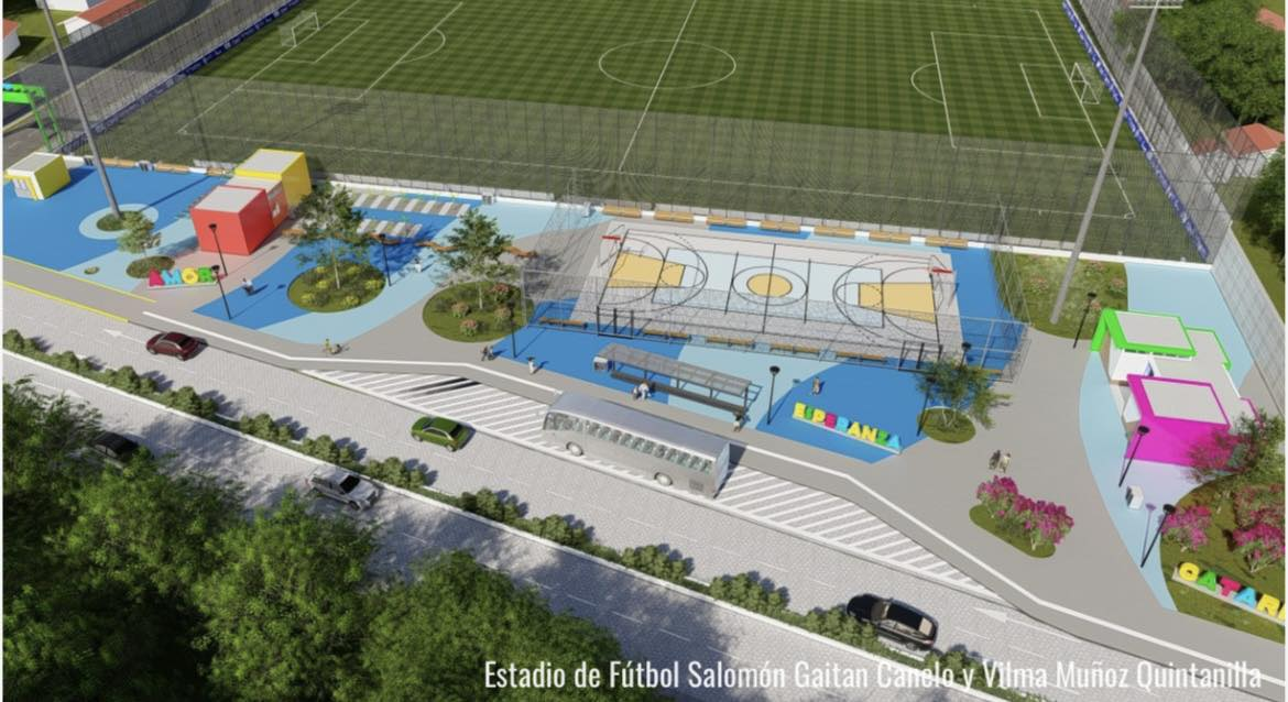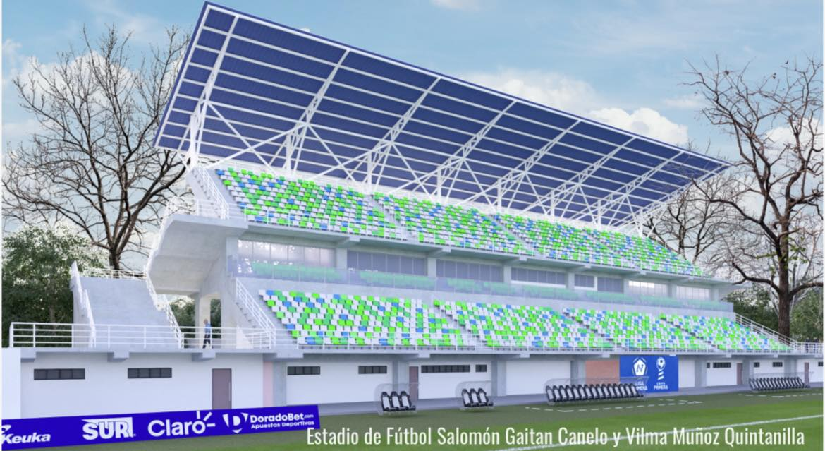 La construcción ya inició, y finalizará en el segundo semestre de 2027, tendrá cancha de grama natural, iluminación moderna, pantalla gigante y áreas de servicios, entre otros.