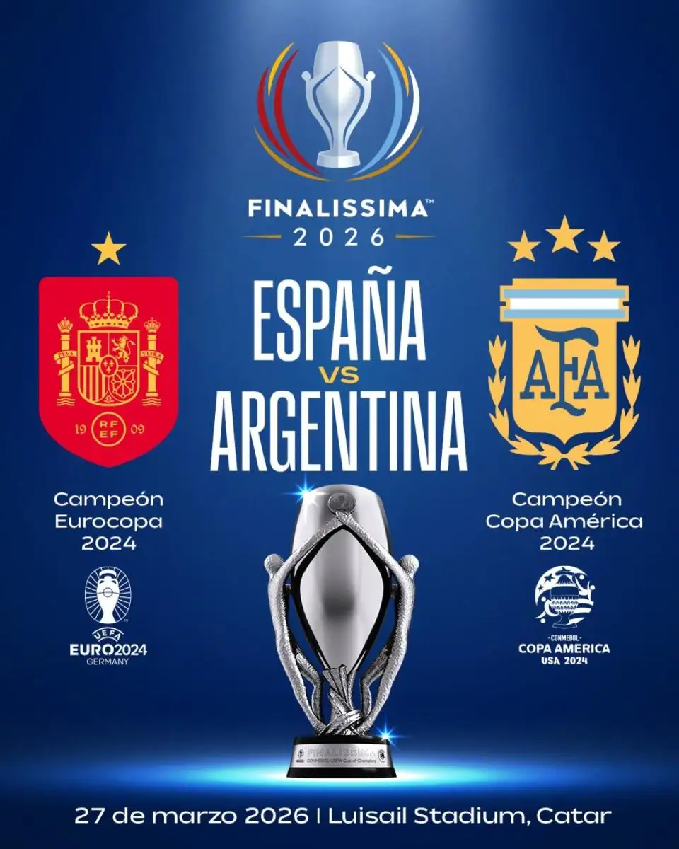 Se anunció para el próximo 27 de marzo del 2026, la gran Finalísima entre la campeona de la Eurocopa, España y la campeona de América, Argentina. El partido se realizará en el estadio Lusail de Catar.