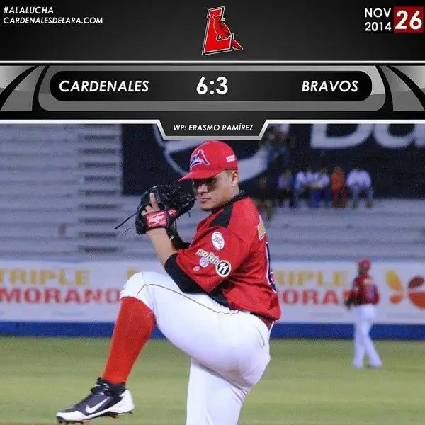 Espectacular actuación del nicaragüense Erasmo Ramírez en el beisbol profesional venezolano con el equipo de los Cardenales de Lara, el nica logró conseguir su segunda victoria de la liga ante los Bravos de Margarita.