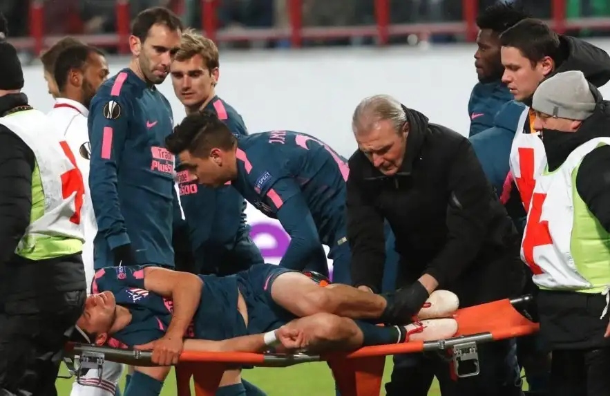 Las pruebas radiológicas a las que se ha sometido el jugador en Madrid, han confirmado una fractura en el peroné de su pierna izquierda, aunque el Atlético no ha dado un tiempo estimado de baja en su parte médico, pero se comenta que estaría perdiéndose el mundial de Rusia-2018.