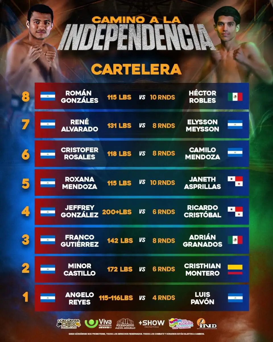 La Promotora de Boxeo «Güegüense Box» anunció que la cartelera del 12 de septiembre en el Polideportivo Alexis Arguello, será de nueve combates.
