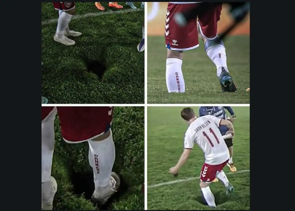 El encuentro deportivo entre Austria y Dinamarca quedó empañado luego que jugadores descubrieran un enorme agujero que se abrió en el campo deportivo de Viena.