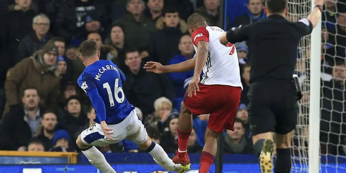 En la jugada McCarthy intentó bloquear sin éxito el disparo frontal del venezolano con tal mala suerte que el impactó que se suponía debía recibir el balón terminó en su pierna mientras el partido iba 1-1 entre el Everton y West Bromwich.