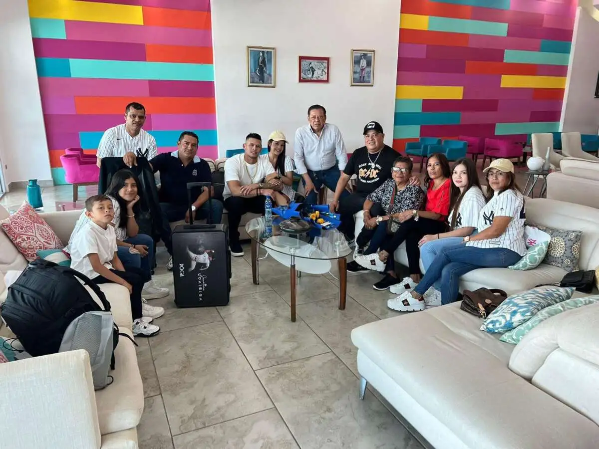 Jonathan fue recibido calurosamente por sus familiares en el Aeropuerto Internacional Augusto C Sandino, en la fotografía publicada en redes sociales, aparece su mamá Fátima Estrada y sus abuelitos doña Melva y Efraín Estrada, además de la novia del bigleaguer Diana Noguera.