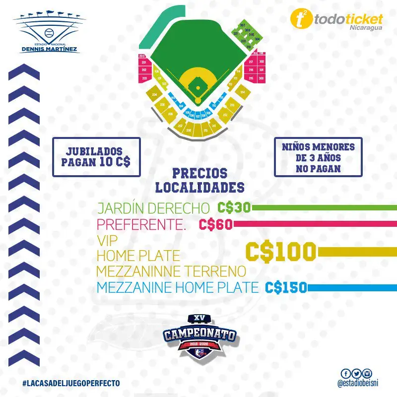 La administración del Estadio Nacional de Nicaragua dio a conocer este miércoles los precios de las entradas para los partidos que se realizarán en la Liga Nicaragüense de Béisbol Profesional, donde los jubilados y niños menores de 3 años entrarán gratis.