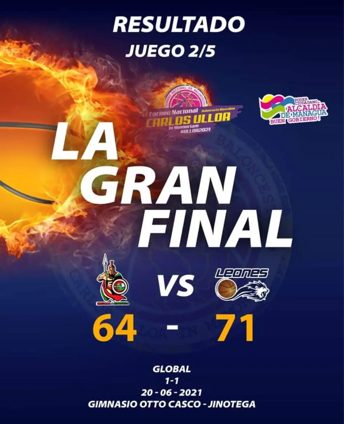 Después de los primeros dos partidos, la serie se encuentra empatada a un triunfo por bando, el sábado, en el primer desafío, en Managua, el equipo de Jinotega, superó 55 a 37 a los Leones de la Alcaldía.