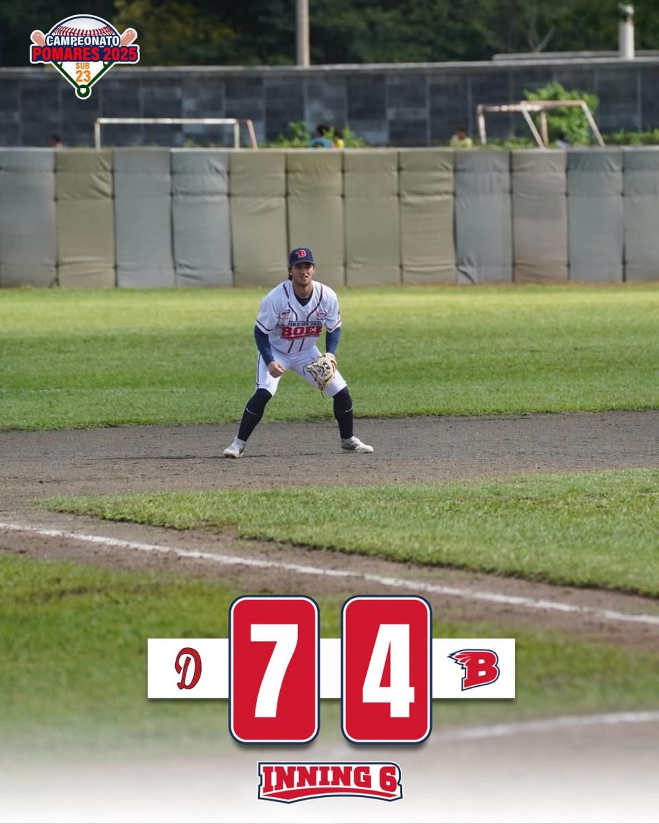 En una jornada marcada por la lluvia, la Maquinaria Roja de los Dantos vencieron 7-4 y 7-3 a los Indios del Boér en el primer fin de semana del Campeonato Nacional de béisbol Germán Pomares categoría U-23.