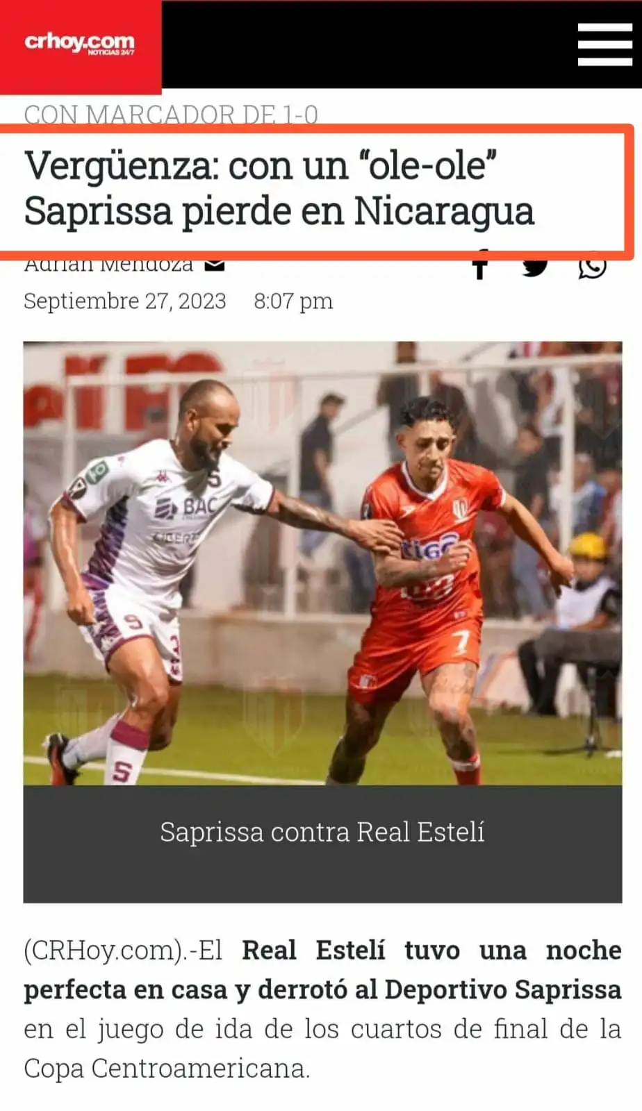 del Real Estelí que golpeó el ego morado». Por su parte el CR Hoy tituló: “Saprissa entregó la iniciativa y lo pagó caro, con este golazo Saprissa pierde en Nicaragua».