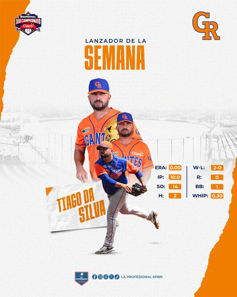 En tanto Tiago Da Silva, picher de los Gigantes de Rivas, obtuvo dos victorias, en diez episodios lanzados, recetó catorce ponches, solo permite dos hits y tiene 0.00 de efectividad.