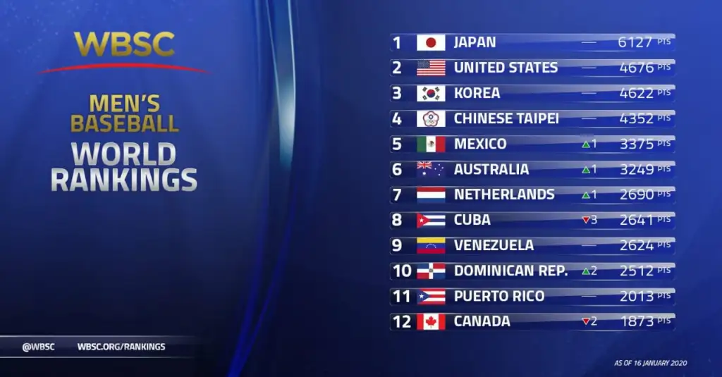 La Confederación Mundial de Béisbol y Softbol (WBSC) dio a conocer hoy el ranking de las mejores selecciones del mundo y Nicaragua aparece en el puesto 15, un ranking que lo encabeza nuevamente Japón.