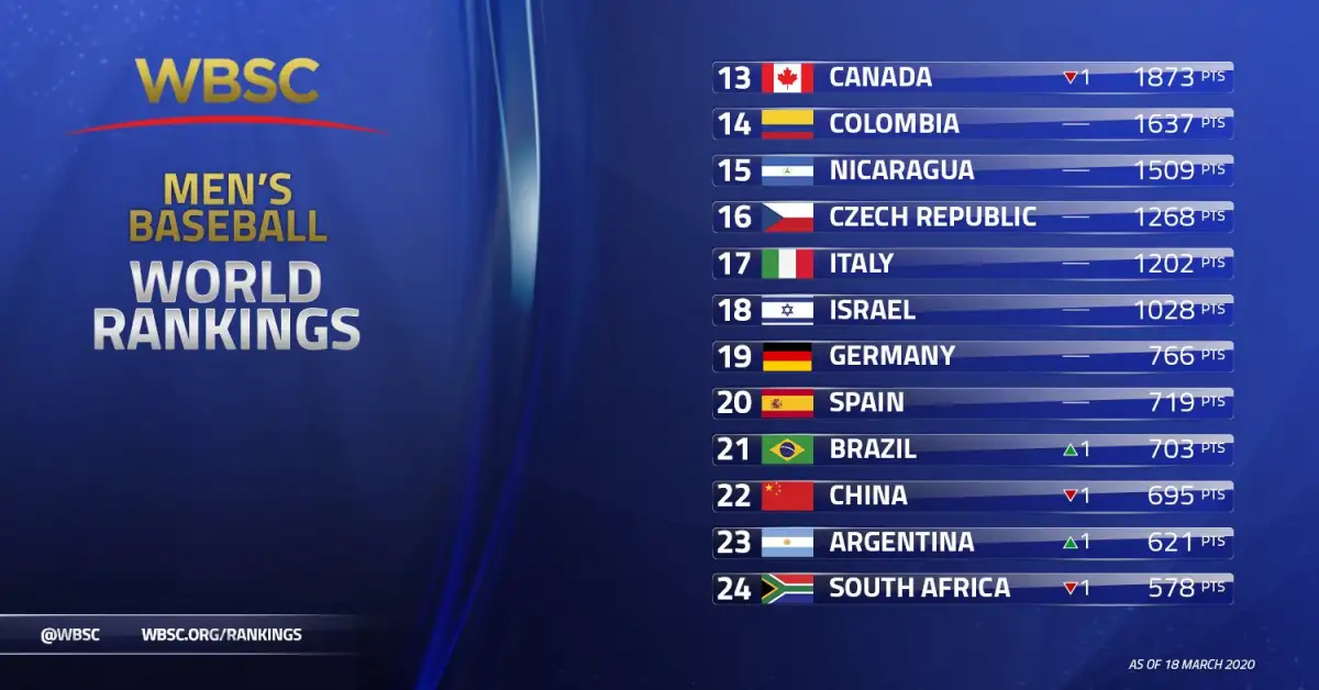 El Ranking Mundial de Béisbol de la WBSC, actualizado, incluye los resultados del Clasificatorio de las Américas para la Copa Mundial de Béisbol U-23, ganado por Nicaragua y también el Clasificatorio de Oceanía para la Copa Mundial de Béisbol U-15 2020, ganado por Guam, destaca el comunicado.