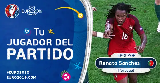 Portugal igualó el marcador en el minuto 33 con un gol de Renato Sanches (Bayern de Múnich). Nani pasó el balón de taco a Sanches, que marcó desde la línea del área penal.