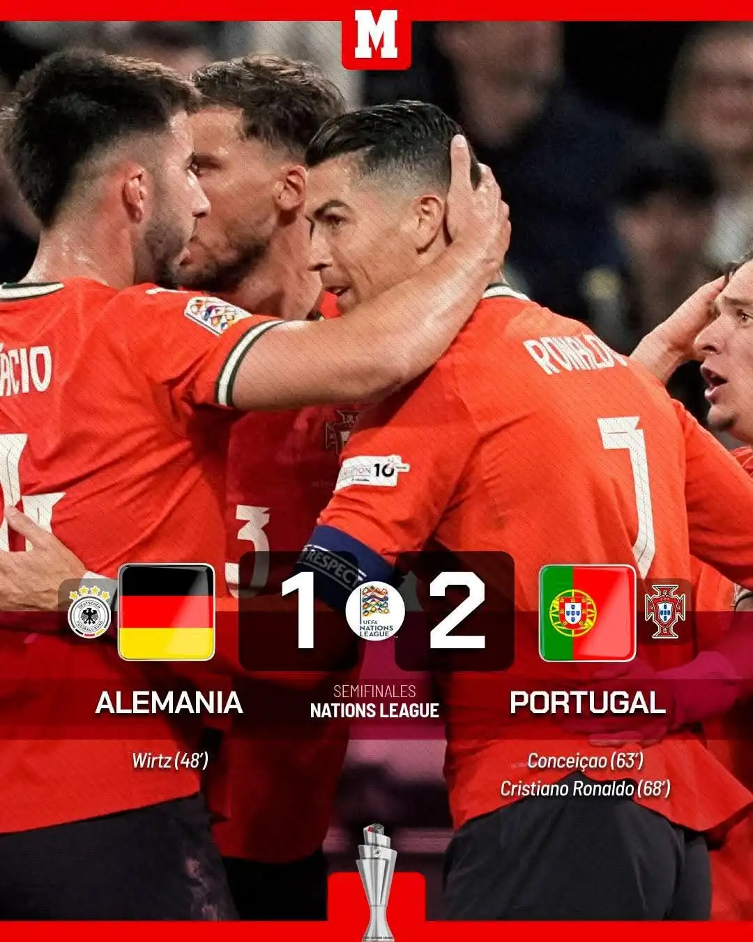 El partido comenzó con Alemania tomando la delantera gracias a un gol de Florian Wirtz, sin embargo, Portugal reaccionó rápidamente y logró remontar con anotaciones de Francisco Conceição y Cristiano Ronaldo, quien sumó el gol número 937 de su carrera.