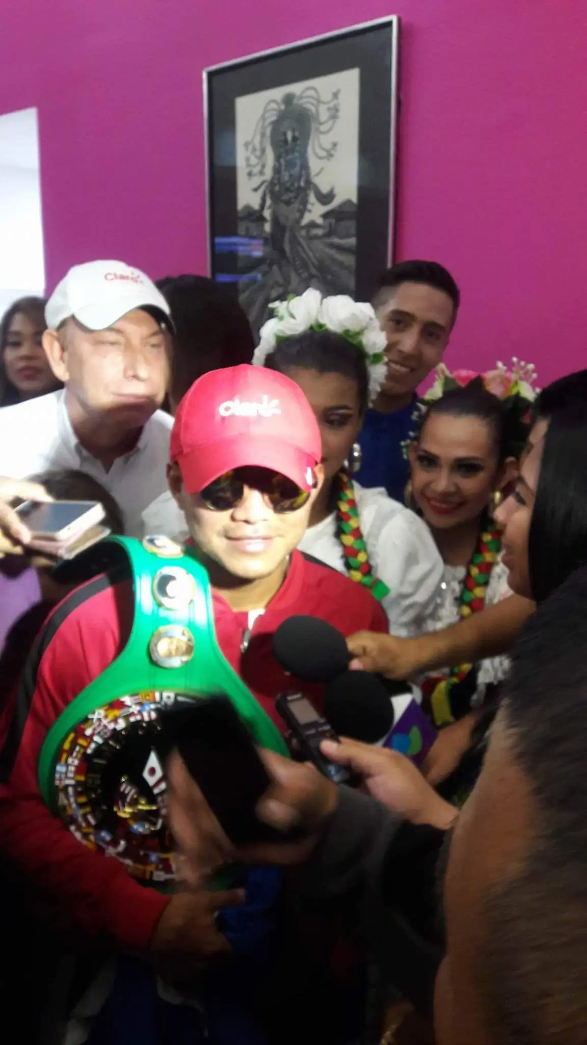 El Tetracampeón del mundo, Chocolatito González, se hizo acompañar de la Juventud Sandinista y familias capitalinas que les acompañaron en caravana desde la terminal aérea hasta el barrio La Esperanza, donde nació nuestro campeón.