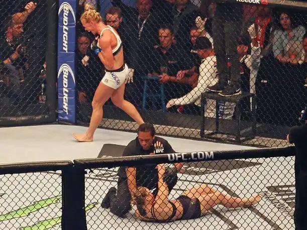 El resultado fue una gran sorpresa ya que Rousey era considerada una de las peleadoras más fuertes de este deporte pero eso no le importó a Holly quien le propinó una impresionante patada a la ex campeona en el octágono. El combate fue detenido luego que Holm le propinó una lluvia de golpes mientras Ronda estaba noqueada en la lona.