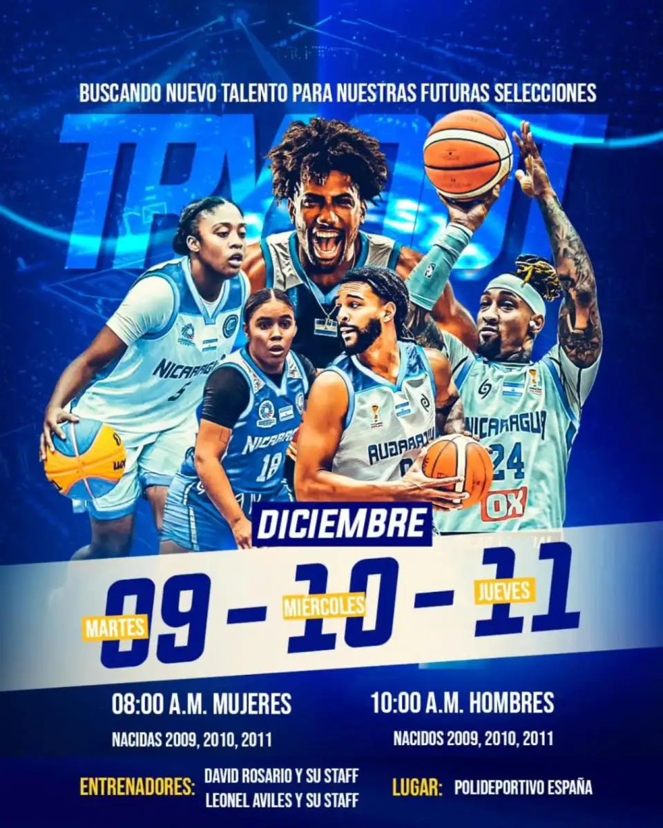 La Selección Nacional de Baloncesto de Nicaragua anunció la realización de un Try Out, los días 9, 10 y 11 de diciembre, con el objetivo de identificar y reclutar jóvenes con talentos para formar parte de las selecciones.