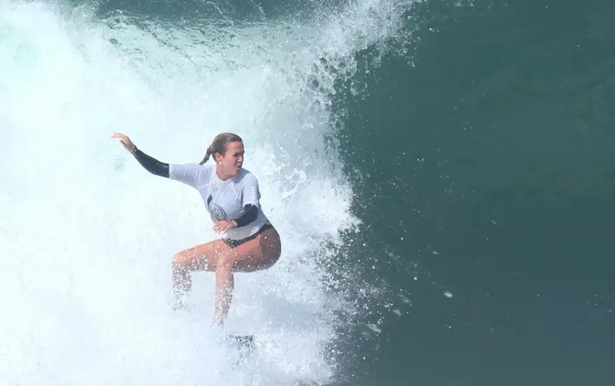Éste sábado la surfista nicaragüense Candelaria Resano, disfrutó lo que bien sabe hacer sobre su tabla en las rebeldes olas de la playa de Finca Popoyo en Tola, departamento de Rivas.