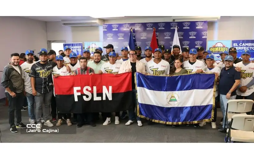 El equipo de béisbol Tigres de Chinandega, represéntate de Nicaragua en la Champions de Béisbol, recibió de manos del gobierno de la República y FENIBA, la bandera nacional, previo a su participación en el torneo internacional.