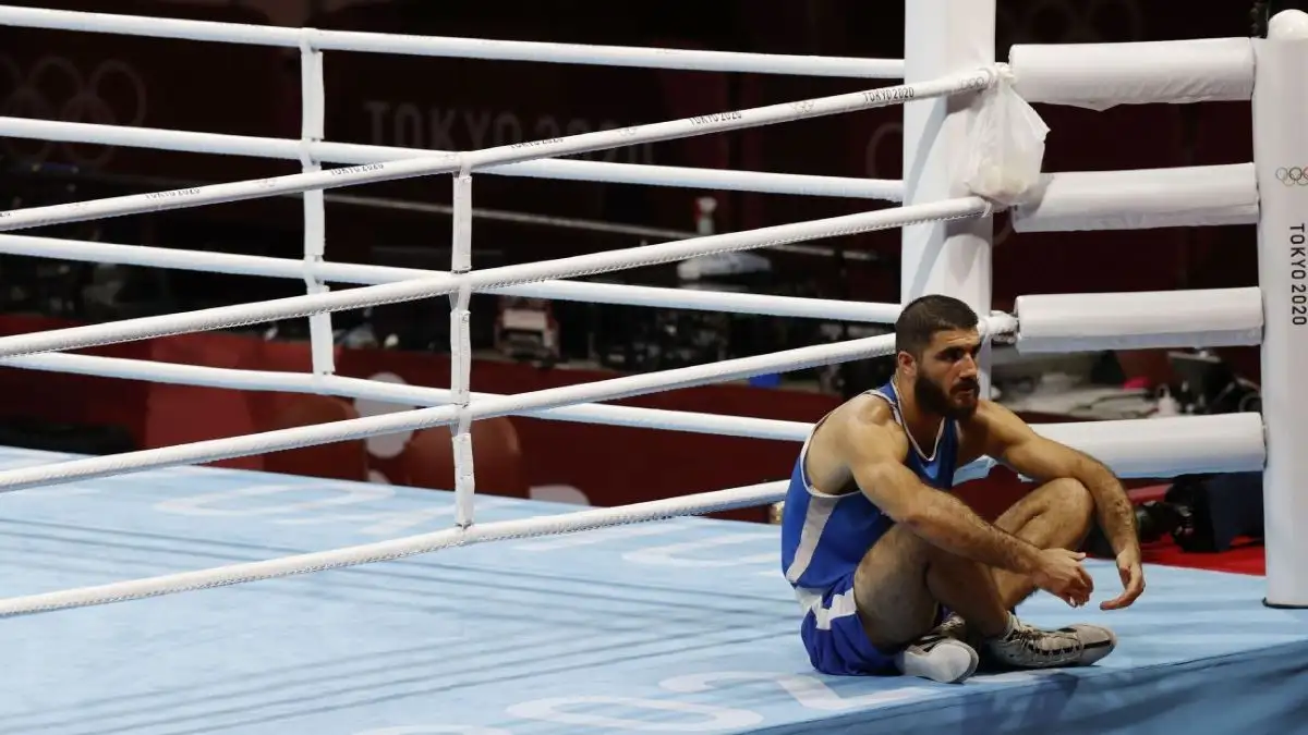 El boxeador francés de los pesos superpesados, Mourad Aliev, se sentó en el ring olímpico durante una hora en protesta por la decisión del árbitro de descalificarlo en cuartos de final en la categoría de más de 91 kilos.