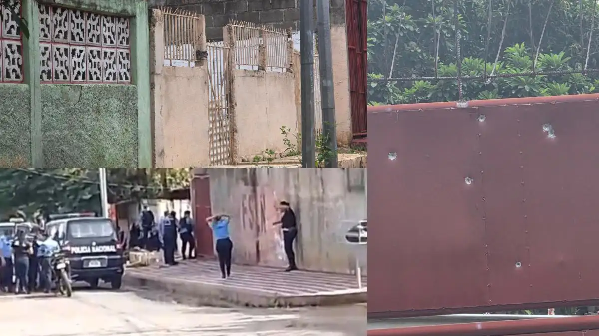 Afortunadamente, los seis disparos no impactaron a ningún agente policial ni a las personas que se encontraban cerca; en cambio, terminaron incrustados en el portón rojo de una casa vecina.