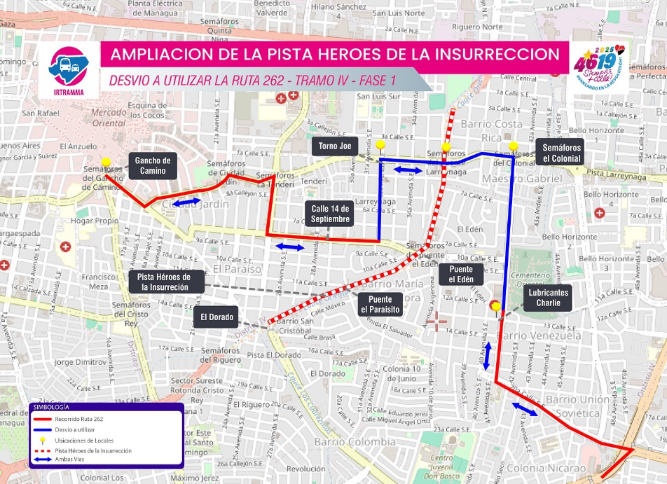 La Alcaldía de Managua informó a la población sobre cambios temporales en la circulación vehicular que se aplicarán el próximo viernes 3 de octubre de 2025, en los barrios Larreynaga y El Edén, en el marco del Proyecto de Rehabilitación de la Pista Héroes de la Insurrección.