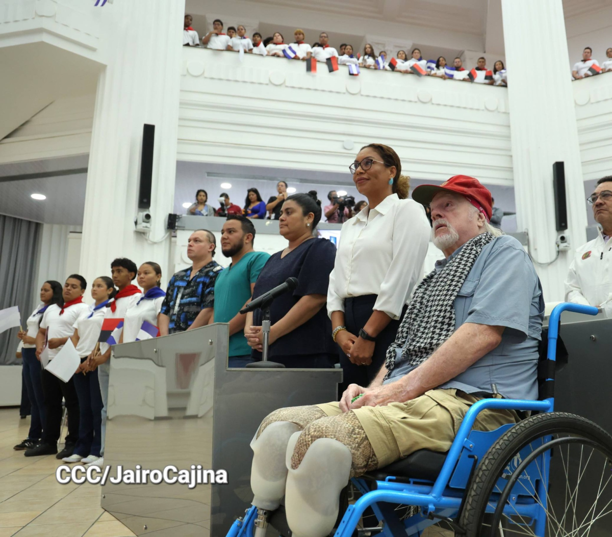 Brian Wilson, Héroe de la Humanidad, quien perdió sus piernas en 1987 en su país, bloqueando el paso de un tren con armas para la contra nicaragüense, fue homenajeado hoy en la Asamblea Nacional durante la conmemoración del Día del Héroe Internacionalista.