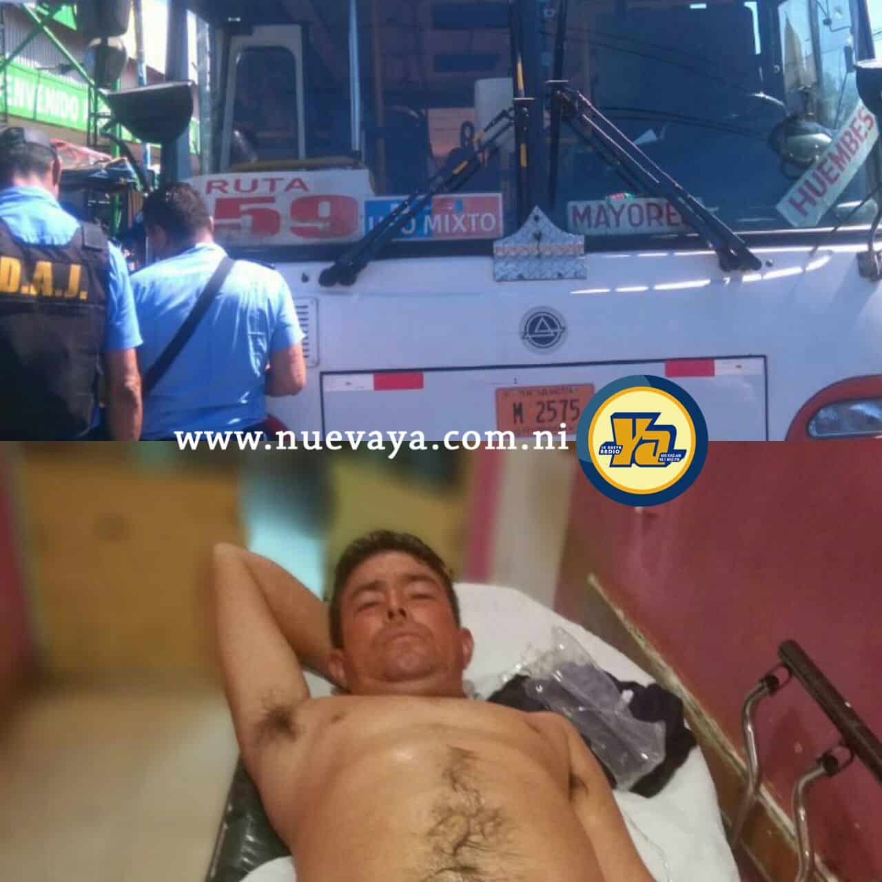 Con un balazo en la nalga derecha resultó el vendedor de caramelos Jairo Isaac Velázquez Molina, de 27 años, a manos del conductor de buses Luis Javier Munguía, de 39, quien le disparó a un sujeto que recién acababa de asaltar a una pasajera en la ruta 159, en Managua.