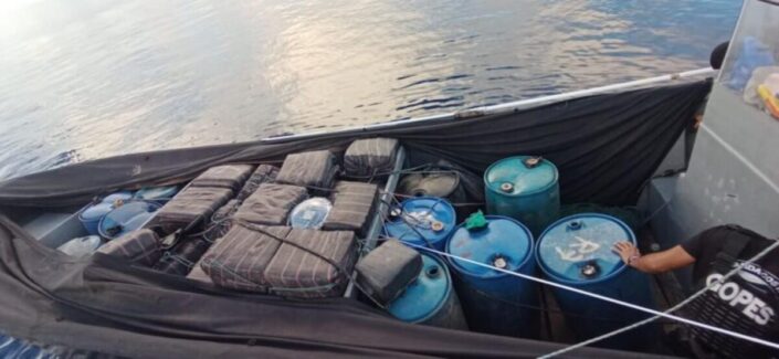 En la lancha se encontraron 49 bultos con 1,439 paquetes de droga, entre estos, más de 1,266 kilos de marihuana y 176 kilos de cocaína. También llevaban 850 litros de combustible.