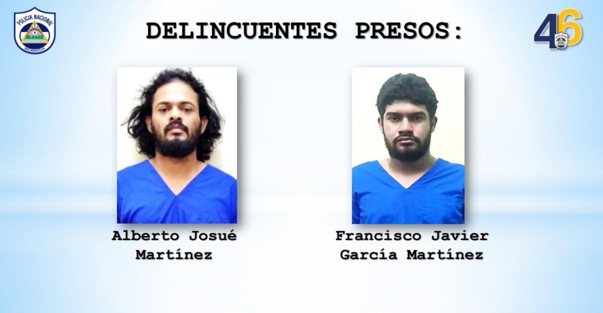 La Policía Nacional informó este lunes la captura de los delincuentes, Alberto Josué Martínez y Francisco Javier García Martínez, dos de los autores del asalto ocurrido en la tienda Celulares Nicaragua, ubicada en Altamira, Distrito 1 de la ciudad de Managua.