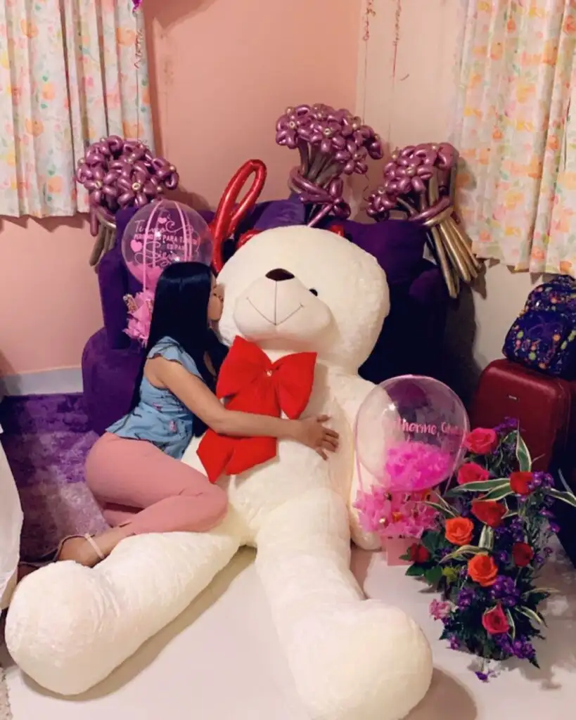 La presentadora de televisión recibió un enorme peluche el pasado 14 de Febrero, con el cual se tomó una foto y la presumió en sus redes sociales.