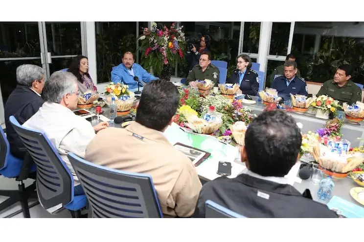 Daniel y Rosario estuvieron acompañados por el Co-director del Sinapred, doctor Guillermo González; el Director del Departamento de Meteorología del Ineter, Marcio Baca; el Jefe del Ejército, General Julio César Avilés; la Jefa de la Policía, Primera Comisionada Aminta Granera; el Secretario General de la Alcaldía de Managua, Fidel moreno; y otros funcionarios del Gobierno Sandinista.