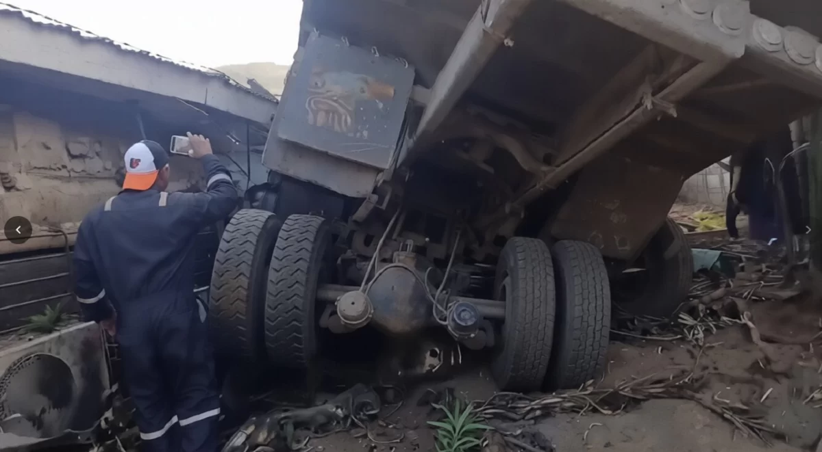 Finalmente, el camión terminó estrellado contra el muro perimetral de la empresa CONCRENIC, donde la señora Ana Baquedano sufrió golpes y una crisis nerviosa, cuando limpiaba el lugar.