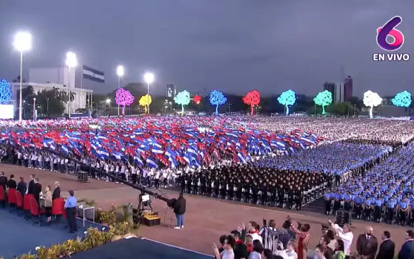 La Copresidenta de Nicaragua indicó que «desde esta plaza La Fe donde año con año santificamos los caminos de merecimientos y logros del pueblo bienaventurado y capaz de nuestra Nicaragua que reza a Jesucristo y habla español, miskito, creole, garífuna, mayangna, ramas. En esta Nicaragua, de todas y todos, nos declaramos en batalla permanente con los pueblos libres, solidarios, hermanables y decididos del mundo, complementándonos como comunidad humana, como es y debe ser en combate frontal contra la pobreza en toda su forma y por el respeto que todos merecemos a nuestros caminos, a nuestras rutas, a nuestras culturas, a nuestras formas de ser, vivir y dar vida para alcanzar nuestros sueños, realizar nuestros sueños y servir en unión por el bien común a las urgentes, cada vez más urgentes transformaciones que debemos forjar y alcanzar, forjar y alcanzar por nuestra dignidad, independencia, soberanía y, por supuesto, bienestar».