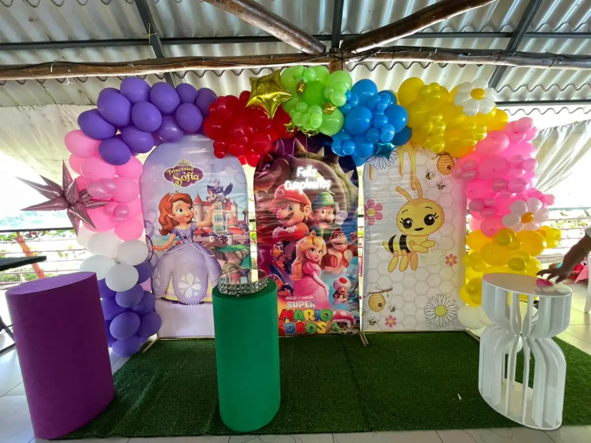 La decoración giró en torno a tres personajes favoritos de la infancia: la Princesa Sofía, la Abejita Chiquitita y Mario Bros.