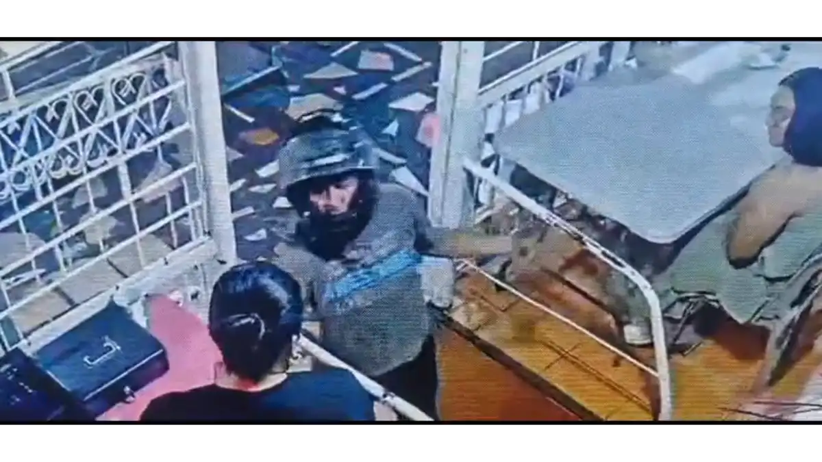 Tras lograr su cometido, el delincuente que viste un jean negro, camisa gris con letras blancas y celestes y zapatos deportivos negro con blanco, sale caminando del lugar y huye a bordo de una moto.
